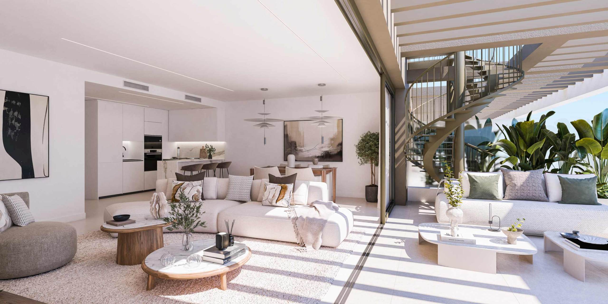 The focus is on light and space. Each apartment boasts generous terraces with panoramic views of the Mediterranean Sea and the surrounding mountains, ideal for enjoying the exceptional climate. Large windows allow for a seamless transition between indoors and outdoors, with the open-plan living rooms and kitchens perfectly tailored to a modern lifestyle.